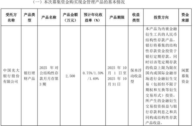 BG大游娱乐平台挖贝网 10月11日消息,中科美菱(920992.BJ)近日披露了部分闲置募资现金管理的最新进展:公司购买了光大银行2500万元理财